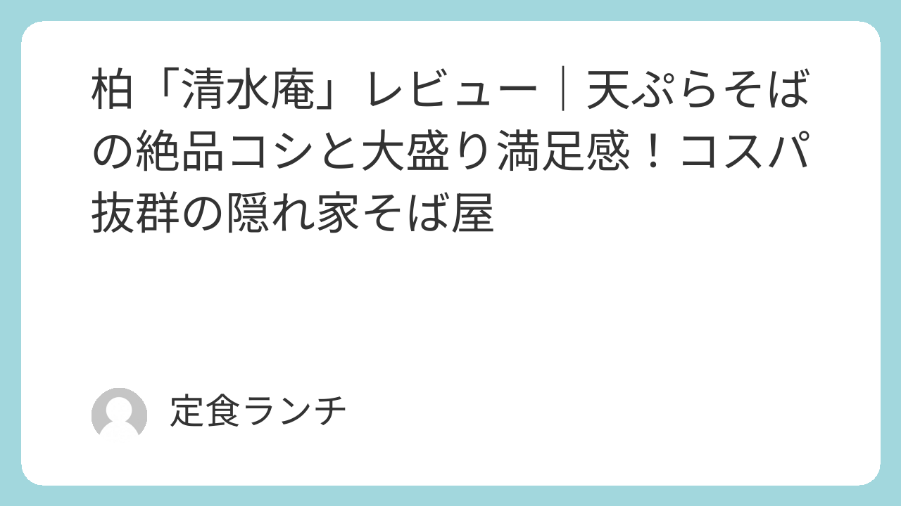 この日は、柏の街をのんびりと歩いていて、少しお腹が空いてきました。ふと、穏やかな住宅街に佇むお店の暖簾が目に入り、思わず足を止めました。そこが清水庵でした。古くから続く佇まいが、なんだか優しく迎え入れてくれるようで、自然と中へ入ってみることにしました。店内は広々としており、テーブル席と座敷がゆったりと配置されていて、慌ただしさとは無縁の空気が流れています。注文を済ませ、席に座って待っている間も、静かな心地よさが心を落ち着かせてくれました。